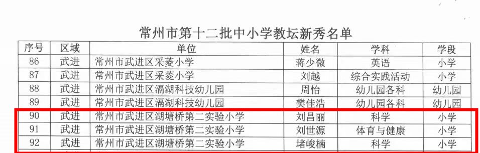 热烈祝贺我校三位教师被评为常州市第十二批教坛新秀、两位教师被评为教学能手