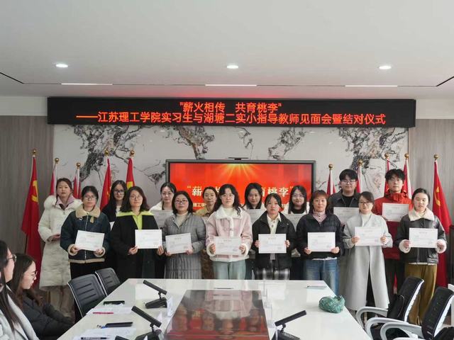 为深化校地合作,助力师范生成长,2026年3月4日下午,江苏理工学院实习生与湖塘桥第二实验小学指导教师见面会暨结对仪式在湖塘二实小四楼会议室隆重举行。江苏理工学院带队教师、全体实习生,湖塘二实小校领导、指导教师及相关工作人员共同参与了本次活动。